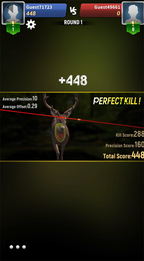 2、在瞄准好猎物后松动屏幕子弹就会发射出去,值得一提的是集中猎物的头部与心脏得分最高。