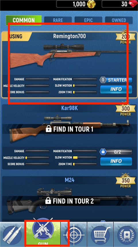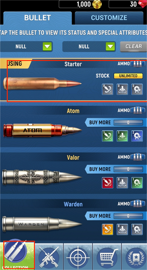 7、狙击枪的选择也至关重要可以搭配不同的子弹打出奇效,对了不同的狙击枪也需要大量金币购买。