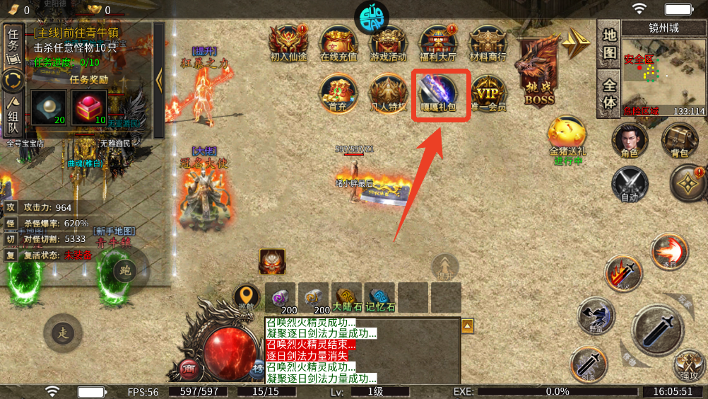 5、在开区的第360分钟内击败活动地图内刷新的三只专属怪即可获得奖励,该活动后续每天20点开启。
