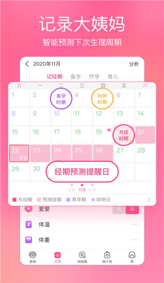 2、【记录大姨妈月经期】只要简单记录大姨妈月经期日期,自动推算大姨妈月经期、排卵期以及减肥美容丰胸时间;