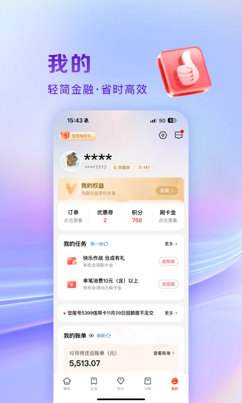 购物专区惠生活:新增购物专区,积分免费兑好礼,爆品秒杀每日抢。