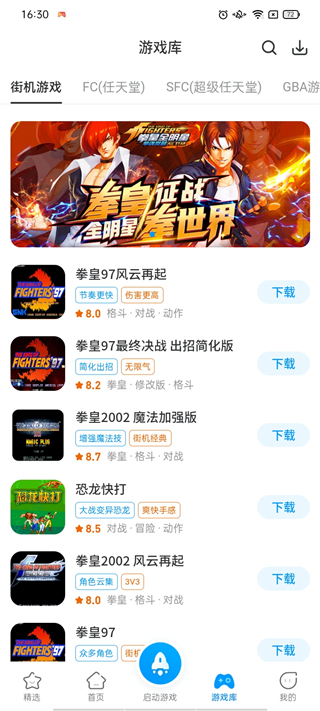 热血街机app中拥有拳皇、恐龙快打、街霸、超级玛丽等经典热门游戏,也有逍遥游、龙珠传奇、战玲珑等变态游戏,满足玩家多种游玩需求。