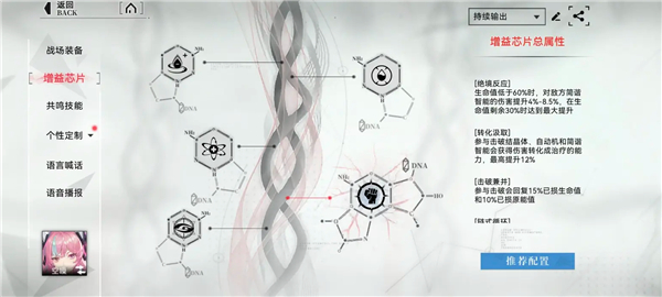 增益芯片则推荐一套个人比较喜欢用的搭配,链式循环、击破兼并、绝境反应、转化汲取和高热叠加,很暴力的一套增益芯片搭配,团战收割无解。