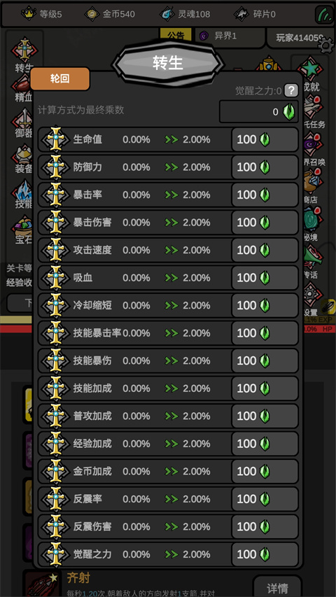 一百级以后开始有转生点,我是全点经验的,反正不点金币血量反震防御就行,个人认为经验最优解。转生后所有装备御灵技能等级变成零级,灵等级不变,技能强化不变。灵魂金币装备碎片清空,锁龙塔层数不变。建议300级转第一次,这个时候就有点升不动了。