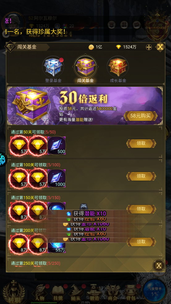 积累充值到一定的数量可以领取,游戏内完成规定副本就能获得余额。