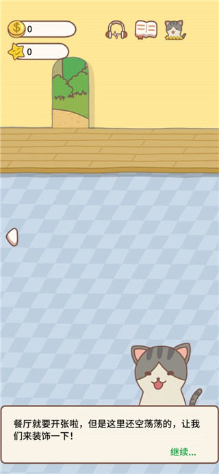 1、首先进入猫咪餐厅2官方版,这里会交代游戏剧情,需要救治这个受伤的小猫;