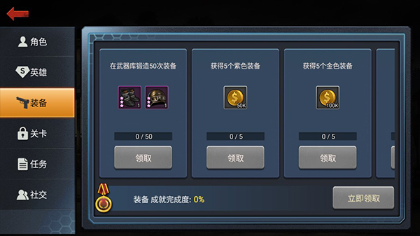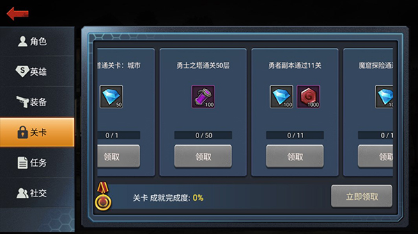 游戏内的成就系统有着角色、英雄、装备、关卡、任务、社交六大成就,完成所有的成就任务即可获得专属成就勋章,完成单个成就任务还能领取丰富奖励。