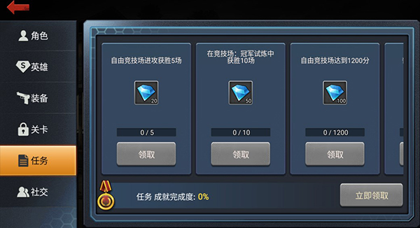 5、任务:玩家完成对战、竞技、闯关等任务即可达成任务成就,领取丰富成就奖励。