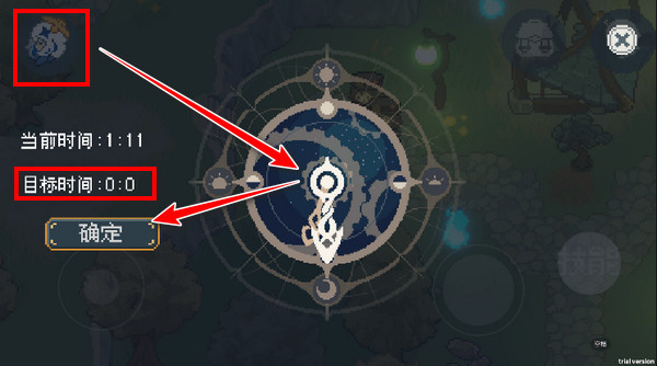 3、走到一堆废墟前,在这里停一下,点开屏幕左上角的图标,将时间调成晚上0:00;