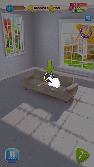 6、接着点击沙发上的锤子图标来翻新沙发。