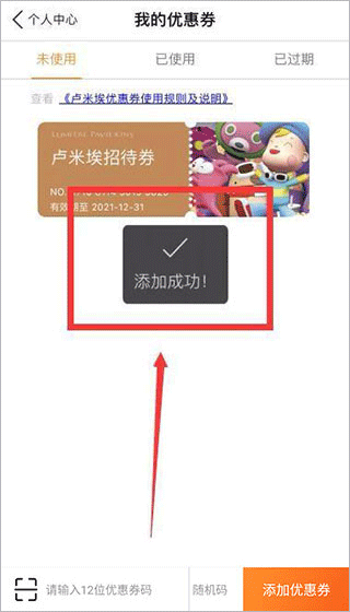 - 扫描完成后,点击【添加优惠券】,即可完成兑换。