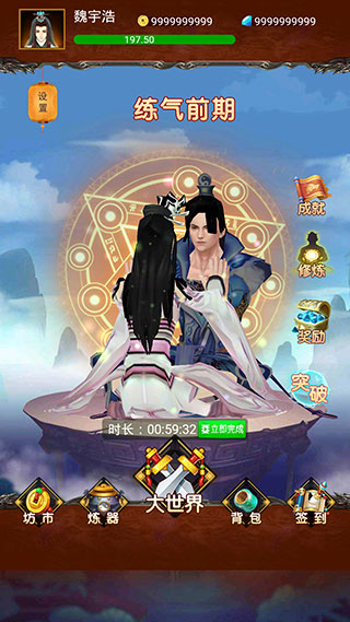 6、选择你的boss进行战斗,每一个boss都有着不同的属性,当你境界达到一定时即可轻松击败强大的boss;