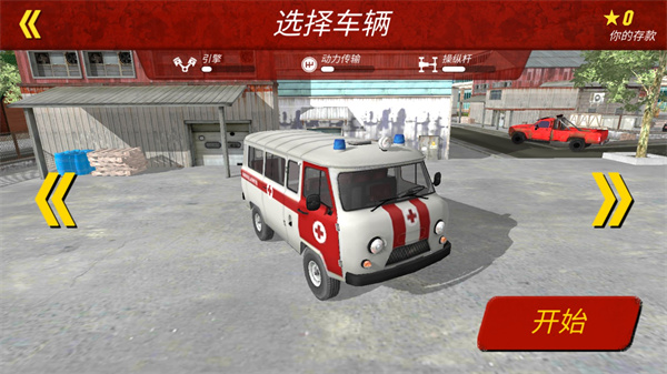 1、下载进入救护车救援模拟游戏,选择你要驾驶的救护车开始你的挑战;