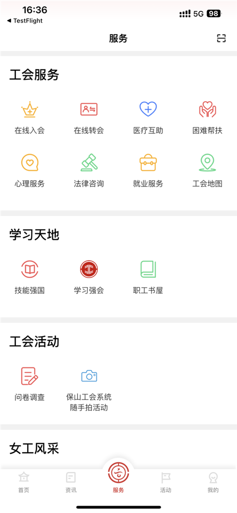 - 快速访问在线入会、转会、医疗互助等工会服务,浏览各类工会资讯。