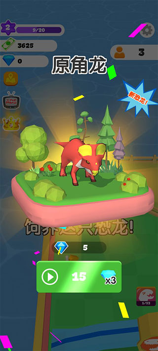 1、Q版风格的游戏画面;2、解锁多种多样的恐龙;