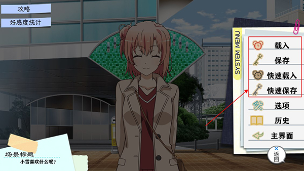 4、玩家可以通过点击对话界面右下角的铅笔图标查看好感度、存档、载入等。
