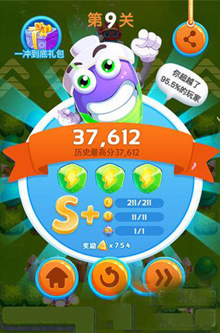 在结算界面方面,总共有211金币,11个小能量球,1只怪物,虽然金币量较多,但相信有新角色的超能力,要获得这些金币也不在话下,至于那只怪物完全不够看,本关完全可以多点怪物,让我们的冲哥能够有发挥的空间。