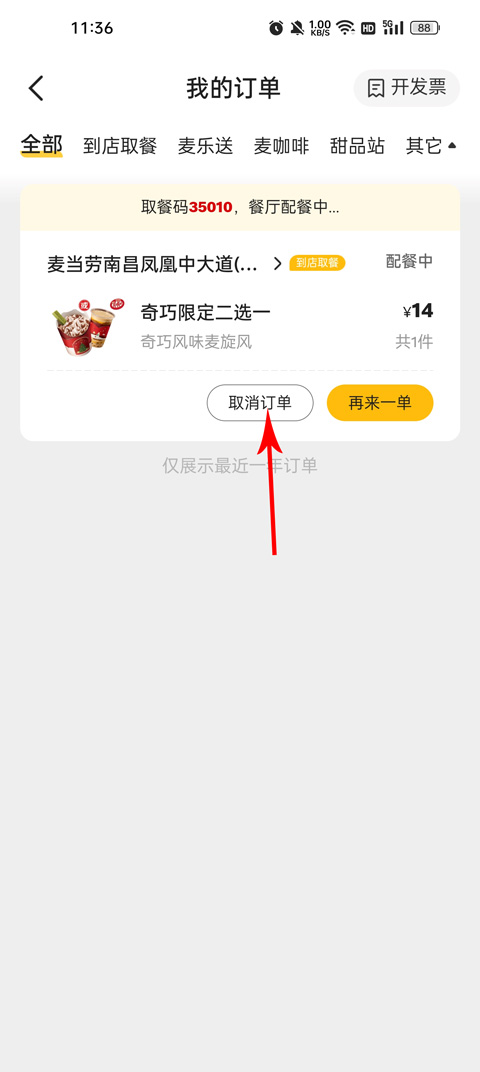 3、在我的订单页面找到全部,找到要退款的订单,然后点击取消订单;