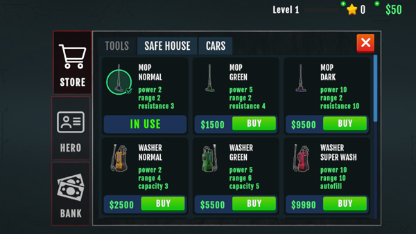 有时,你的装备需要升级。如果您的灯或手电筒不够亮,请购买新的。如果血太多,请升级您的强力清洗喷嘴。在每次任务之前检查可用的特权,并增强您的清洁武器库,使您的工作更轻松。