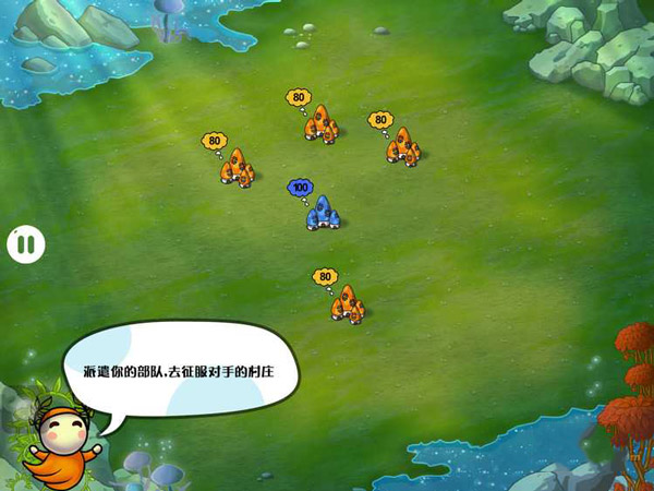 在游戏中,玩家需要用手指操作建筑中的蘑菇士兵,选择出战比例和规划行进路线,征讨远处的敌方建筑。建筑可以在3种形态间转换,攻击/生产/作为Buff来源,都是战略中不错的选择。当战场中所有的建筑物都被一方所占领的时候,那么这个阵营就获得了战役最终的胜利。