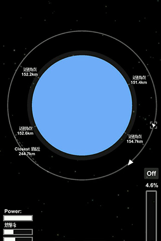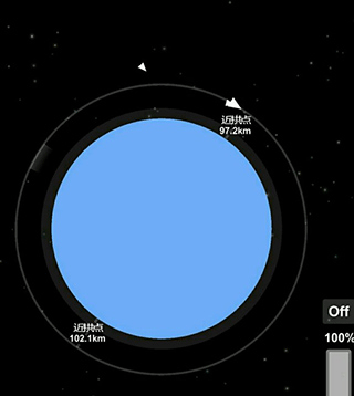 点击喷射器可以打开发动机,点击off和on可以打开关闭燃料,滑动可以加大推力但是燃料消耗更快,跟着箭头的指示奔月吧。