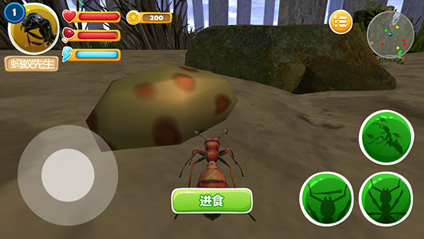 3、生存模式,蚂蚁的血量会不断消耗,所以你需要操控蚂蚁搜寻食物,及时的补充血量。