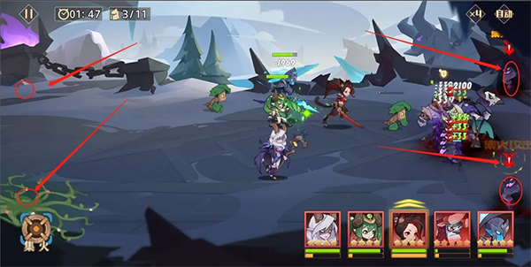 只需要注意暗影萨满召唤四个角落的蛇杖时,选个远程把这4个蛇杖点掉即可,这4个蛇杖点下就碎,不点的话如果练度够直接先激活秒掉暗影萨满也行。