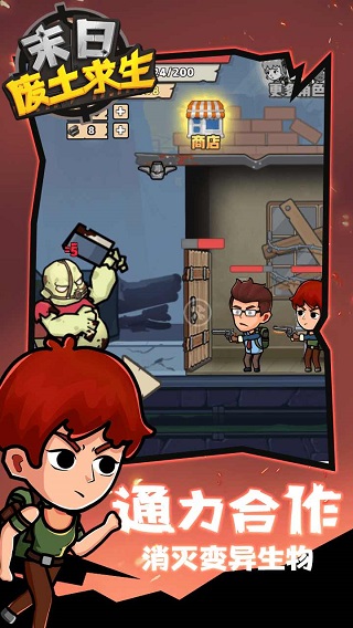 末日废土求生是一款以末日题材打造的生存射击类游戏。游戏中,突如其来的丧尸病毒让整座城市陷入瘫痪,大量人类被感染、变异。作为一名侥幸逃出生天的幸存者,你需要在避难所的庇护下与丧尸们周旋。 游戏采用独特的卡通画风,在玩法上进行了创新设计,玩家需要收集资源和材料,通过升级避难所和武器制造来抵御丧尸的入侵。游戏特色包括:1. 丰富的探索系统:玩家可以在城市废墟中战斗、收集资源,也可以指派流浪者探索未知区域获取资源。2. 独特的训练体系:提供多种训练路径,全方位提升作战能力。3. 多样化的玩法内容:包含昼夜交替、签到、补给箱等趣味系统。游戏亮点:- 搭建防御基地,建造并升级房屋。- 组队战斗冒险,完成生存任务。- 每日挑战不同难度的任务。进入游戏后,首先通过卡通漫画风格的剧情了解背景。操作简单直观:左侧箭头控制移动,右侧按钮为攻击键。玩家需注意管理血量、饥饿值和材料数量。在避难所内休息恢复体力后,可前往工具台制作武器。坚持30天等待救援的过程中,合理利用资源、发展基地、结交伙伴,将是你生存的关键!