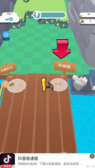游戏内还有其他区域可供玩家探索,每当在一个地方挖掘完全部的矿石,便可解锁一个全新的区域,在那里会有更多稀缺矿石资源等你开采,别忘了及时的升级工具来提升采矿效率哦~
