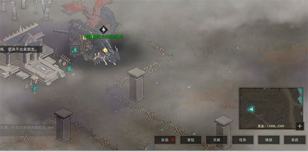 然后在红石谷找到一位叫落魄武士的npc,这个npc会四处乱走所以可能要找一段时间,不过行动速度很慢,时刻注意右下角地图中移动的白点即可,交谈后选项不影响结果,打败他后获得地图残页(左),在背包中使用拼出完整地图后前往黑崖找王牌骑士