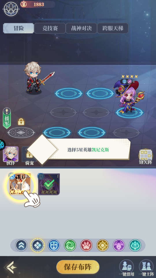 3、选择布阵,可以挑选合适的英雄角色上阵,从而发挥更加强大的战斗力;