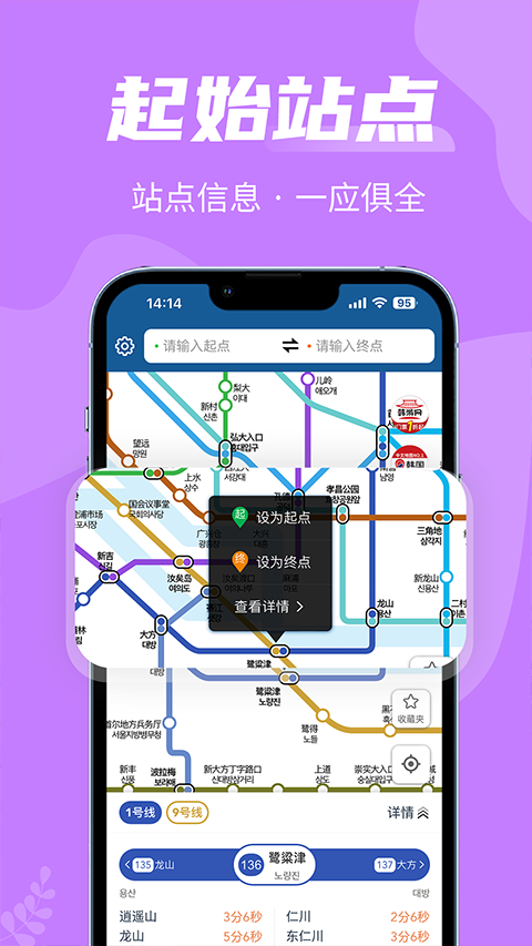 韩游网韩国地铁app是一款专为赴韩旅游设计的手机应用,旨在为您提供便捷的地铁交通服务及丰富的周边信息。该应用支持中文简体、繁体、英语、日语和韩语,覆盖首尔、釜山等主要城市的地铁系统,助您轻松规划行程。【核心功能】- **多城市覆盖**:支持首尔、釜山等地的地铁系统,满足各地出行需求。- **互动地图缩放**:自由缩放的地图布局让您直观掌握线路分布。- **智能路线规划**:输入出发地和目的地,APP即刻生成最优路线,并提供多种方案选择。【特色服务】- **多语言支持**:涵盖中、英、日、韩等多种语言,满足不同用户需求。- **旅行社交互动**:在"旅行Talk"板块分享您的旅游心得和新鲜事,与其他游客交流经验。- **主要站点筛选**:通过"主要站"功能快速定位重要地铁站,简化出行决策。【实用工具】- **到站提醒**:设置闹钟提醒,避免错过下车时间。- **费用与时间查询**:即时获取所需费用和预计到达时间,节省出行成本。【应用优势】- **丰富信息**:提供站点详情、费用信息和区域地图等,助您全面掌握出行信息。- **个性化推荐**:根据您的搜索历史和需求,智能推荐最优路线,节省时间和精力。- **友好体验**:简洁大方的中文界面设计,确保无语言障碍,操作流畅便捷。【更新日志】v3.7.8版本:- 全新视觉设计:界面更简洁清新,提升使用体验。- 交互优化:操作更加流畅,用户体验更佳。- 数据升级:地铁数据和路线算法优化,规划更准确。