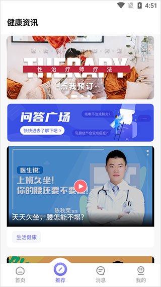 1、进入软件后,在首页中,用户可以观看有关于男科、女性、健康视频、中医等有关视频;