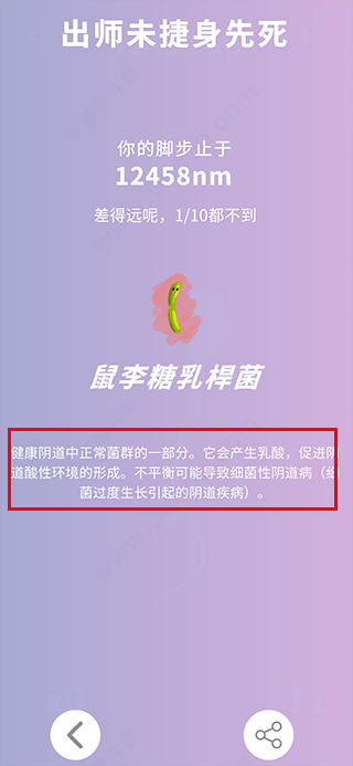 7、最后如果你碰到了细菌,那么就会阵亡淘汰,并还会告诉你细菌详细介绍哦;