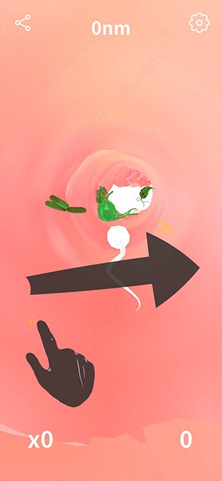 2、上手容易,滑动屏幕控制精子,躲避细菌,到达终点即可