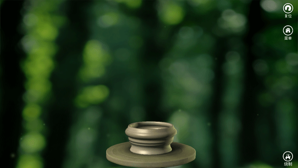 当对陶罐的造型比较满意的时候,点击屏幕右下角的firing图标,就可以将土胚放到窑中烧制。不过不用担心,只需几秒钟烧制过程就完成了。烧制完成的陶器造型十分逼真,甚至可以看到瓶口的细小的裂纹。
