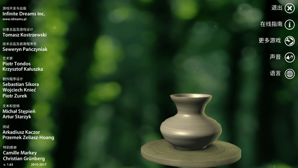 一起做陶瓷中文版是支持简体中文语言系统的一款制作陶瓷器的游戏,玩家靠自己的创造力捏出不同风格形状的陶瓷,简单而有趣,非常容易就能上手。同时在游戏中玩家将成为一位真正的艺术家,从开始施釉烘烤的第一个陶器,你可以利用现有的数十种材料,充分地发挥出自己的创造力与想象力来制作它,当你制作完成时,还可以在市场上出售,出售获取的金钱可以去换取新的图案,并图案风格非常多,包含了中国风、欧美土著、欧洲古代等,而且就算有这些图案也能支持你自由的随瓷器进行第二次创作,简单的美化一下,这样可以卖出更高的价格。