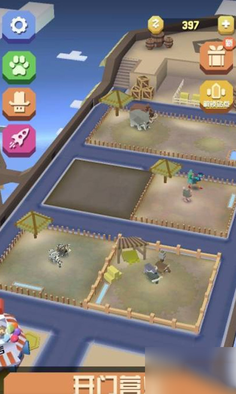 根据抓到的动物数以及搭建的栖息地数量会增加开业的门票,开业可以说是获得最多金钱的方式,不过冷却时间非常长。