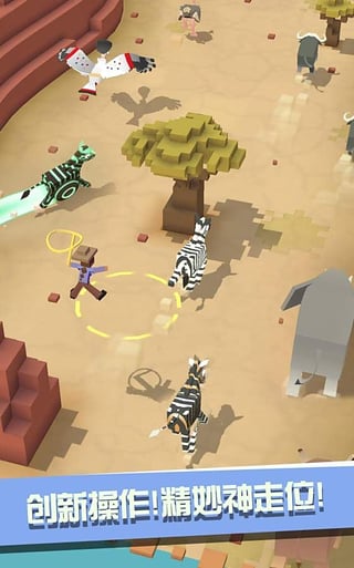2. 动物驯服:通过跑酷模式捕获各种动物,包括公牛、马匹、斑马、长颈鹿和大象等。