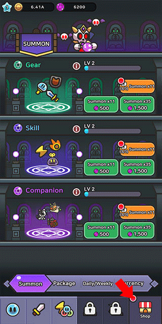 3. **装备与技能**:通过商店界面抽取装备、技能和宠物来增强实力。