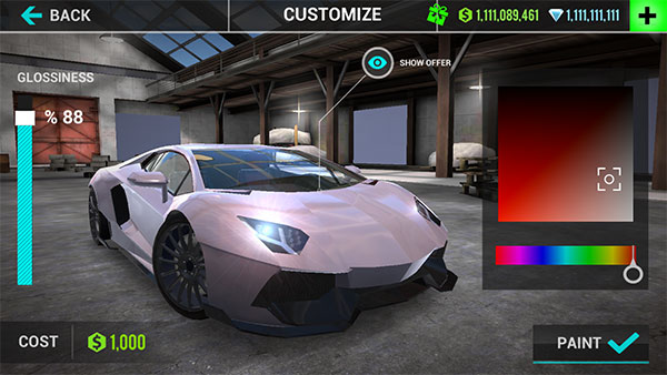 3、可以打造只属于你的限定赛车,各种颜色任你选;