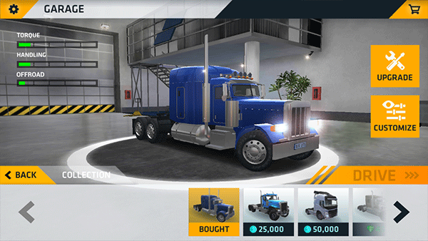 在游戏刚开始时玩家们需要去选择一辆卡车,你的任务就是不断的去解锁新的区域,根据地图找到最安全的道路,将货物送到目的地从而得到相应的奖励,有了奖励你就可以解锁更多性能好的卡车了,玩起来十分有趣。