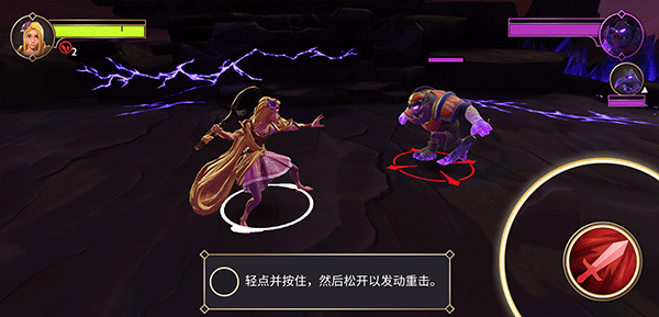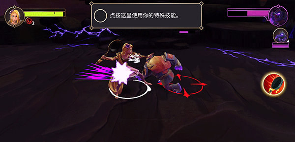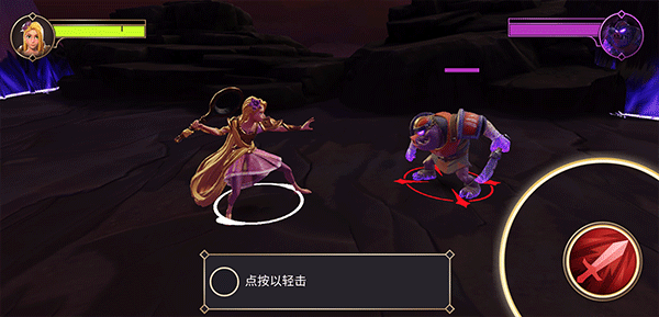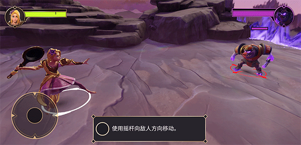 1、在游戏中玩家将使用左下角摇杆控制角色向敌人方向移动