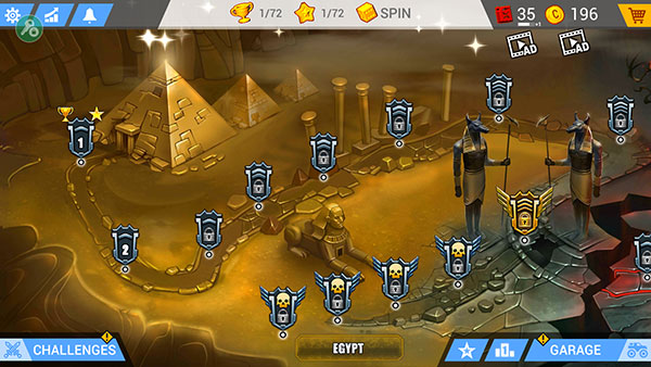 1、进入游戏,选择关卡进行挑战,点击“GARAGE”;