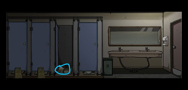 捡地上的纸条,墙上写的提示是镜子,拿着捡到的纸条到厕所照镜子。