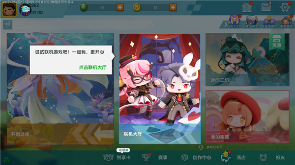 3、正式进入游戏后,里面为用户提供了开始游戏、联机大厅、迷你工坊、我的家园等等玩法,我们根据指引,进入联机大厅;