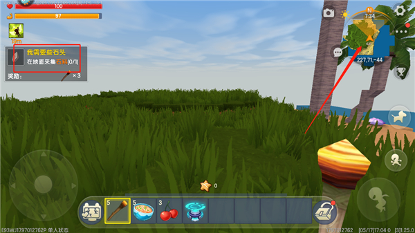 木头做的工具效率太低,接下来需要一些石头,做更高级的石制工具