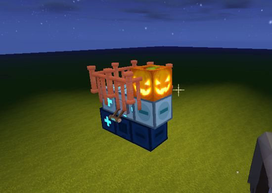 第三步,用南瓜灯和栅栏修饰下我们的座驾,既可以晚上照明,又可以防止掉下车。
