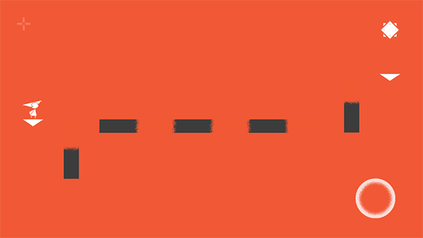 在游戏世界里,只有红和黑两种颜色,包括所有的通关道具都是由这两种颜色组成,游戏玩法很简单,通过改变游戏世界的颜色来控制角色的跳跃前行,在变换其中一种颜色时,另一种颜色所构成的道具也会消失,只有异色的部分显露出来,场景构件也由此在红黑两种的状态下显露出不同的通行属性。