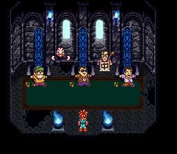 在打法上注意:当BOSS的双手都在健全的情况下,率先攻击双手,之后在攻击中间的主体,如此反复就N次就能成功。好不容易干掉的最终BOSS的心,下面面对的就是最终BOSS的真正主体,建议先从在从ATTACK开始攻击,因为ATTACK会为其他部分加HP,然后在攻击DEFENS因为HP值最少嘛!最后才是最终BOSS的CPU。注意多多使用魔法增加自己的HP和MP。终于经过一般超级艰难的战斗,最终BOSS倒在了玩家的脚下,不过这时还没有结束呢!时光又回到了时间的尽头处与中间的老头对话,得知要到一个光柱里面打开一个机关。现在到光柱处,进入正面的第三个光柱,就会来到一个农家里面在这里会见到地下一个发光的东西,调查它以后就回到时间的尽头再次与老头对话进入先前叫玩家顺时针跑三圈的房间,在房间里面共有五个人设其中有三个是游戏制作人的人设,按照从左到右的顺序与第二个对话,本游戏结束了。